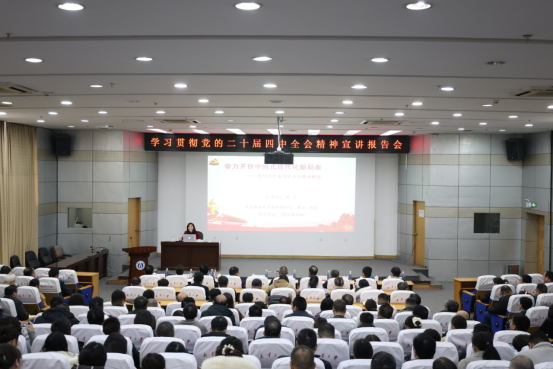 12月30日下午,学习贯彻党的二十届四中全会精神省委宣讲团报告会在南华大学新知学堂举行。省委宣讲团成员、中共湖南省委党校(湖南行政学院)副校长(副院长)刘艺教授作宣讲报告。校党委书记唐忠阳主持报告会并讲话。