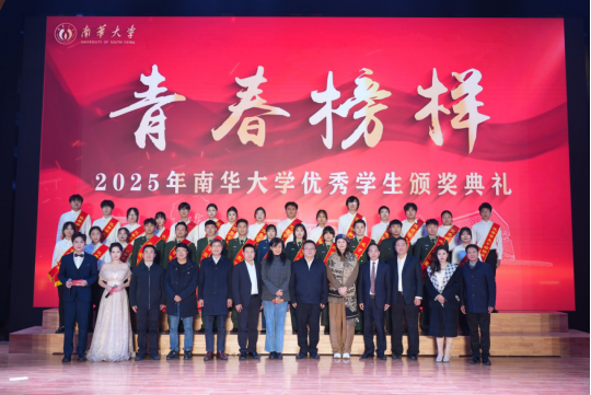 12月24日晚,南华大学2025年“青春榜样”优秀学生颁奖典礼在南华礼堂举行。校党委副书记、校长夏昆,党委委员、副校长王利华、于涛、周青芝出席。