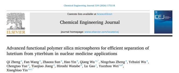 近日,南华大学核科学技术学院殷祥标教授团队在国际权威期刊Chemical Engineering Journal(中科院一…【详细】