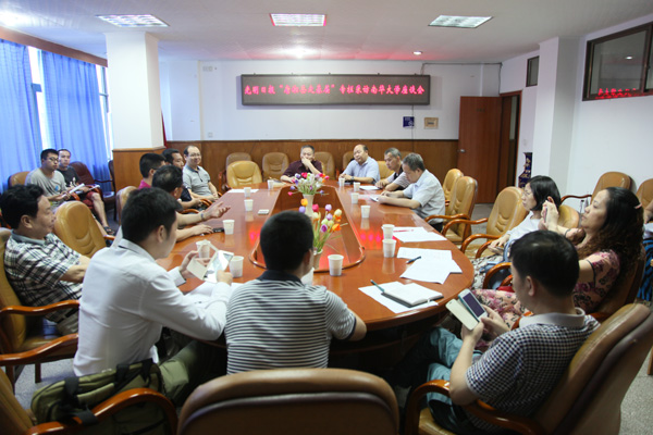 会上,唐湘岳介绍了此次来校采访的目的和意义。