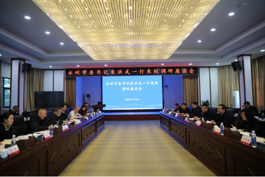 1月6日上午,永州市委书记朱洪武率队来南华大学调研,聚焦校地协同发展核心议题,共商医疗帮扶合作深化路径。校党委书记唐忠阳出席座谈会并讲话。校党委副书记、校长夏昆主持座谈会。永州市领导刘玲军、肖质彬参加。