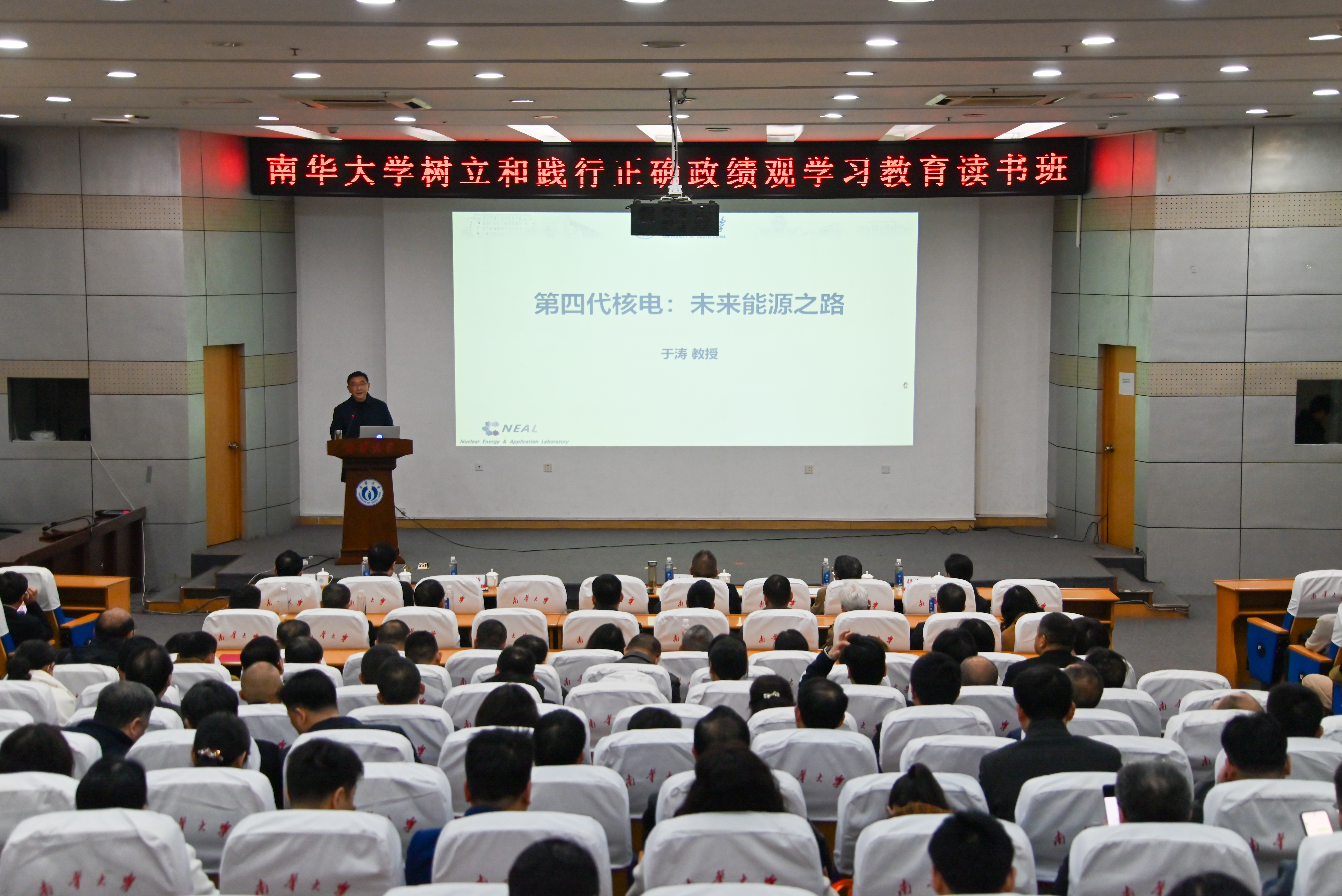 3月25日晚,南华大学树立和践行正确政绩观学习教育读书班暨2026年第2期新知学堂在红湘校区图书馆举行,于涛教授以《第四代核反应堆:未来能源之路》为题作专题辅导报告。校党委书记唐忠阳,全体在家校领导参加读书班,党委副书记李乐主持读书班。