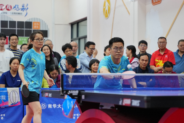 4月27日晚,南华大学教职工乒乓球混合团体赛圆满落幕。当晚进行的决赛中,基础医学院凭借默契配合与精湛技术,在男单、女单、混双比赛中以3个3:0战胜数理学院,从而以3:0的总比分蝉联冠军。
