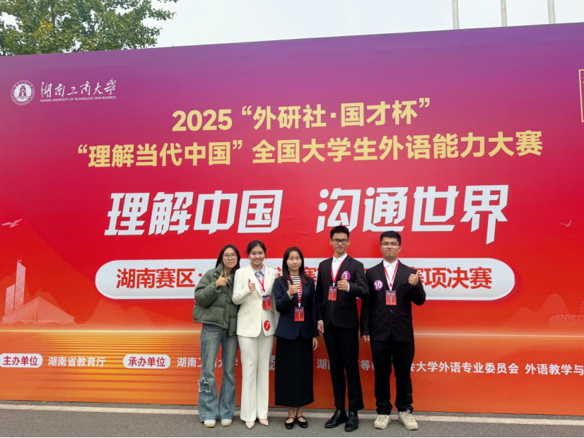 10月26日,由湖南省教育厅主办、外研社协办的“外研社·国才杯”“理解当代中国”全国大学生外语能力大赛湖南赛区决赛在湖南工商大学举行。南华大学参赛团队表现卓越,共获演讲组金奖1项、银奖1项、铜奖2项,口译组铜奖1项,展现出扎实的语言功底与良好的综合素养。
