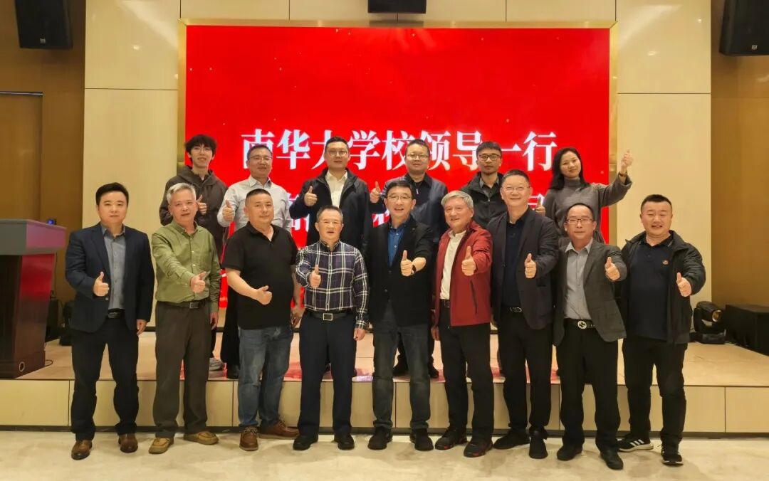 王利华、于涛两人充分肯定了校友们取得的成就,对校友们一直以来支持母校事业发展表示衷心感谢。他们介绍了学校的人才培养、学科建设、科研成果转化、大学生就业创业等情况,并指出此次调研是加强与企业紧密对接,拓展大学生就业渠道、助力南华学子进入优质企业。他们希望进一步深化校企合作,创新体制机制,精准对接企业人才需求,推进组织科研协同攻关,深化产学研用紧密合作,共同探索更多人才联合培养新路径,共同致力于优势资源融合,实现共同发展。同时,他们向校友企业发出邀请,希望他们回湘投资兴业,为湖南现代产业体系与经济高质量发展贡献南华校友力量。