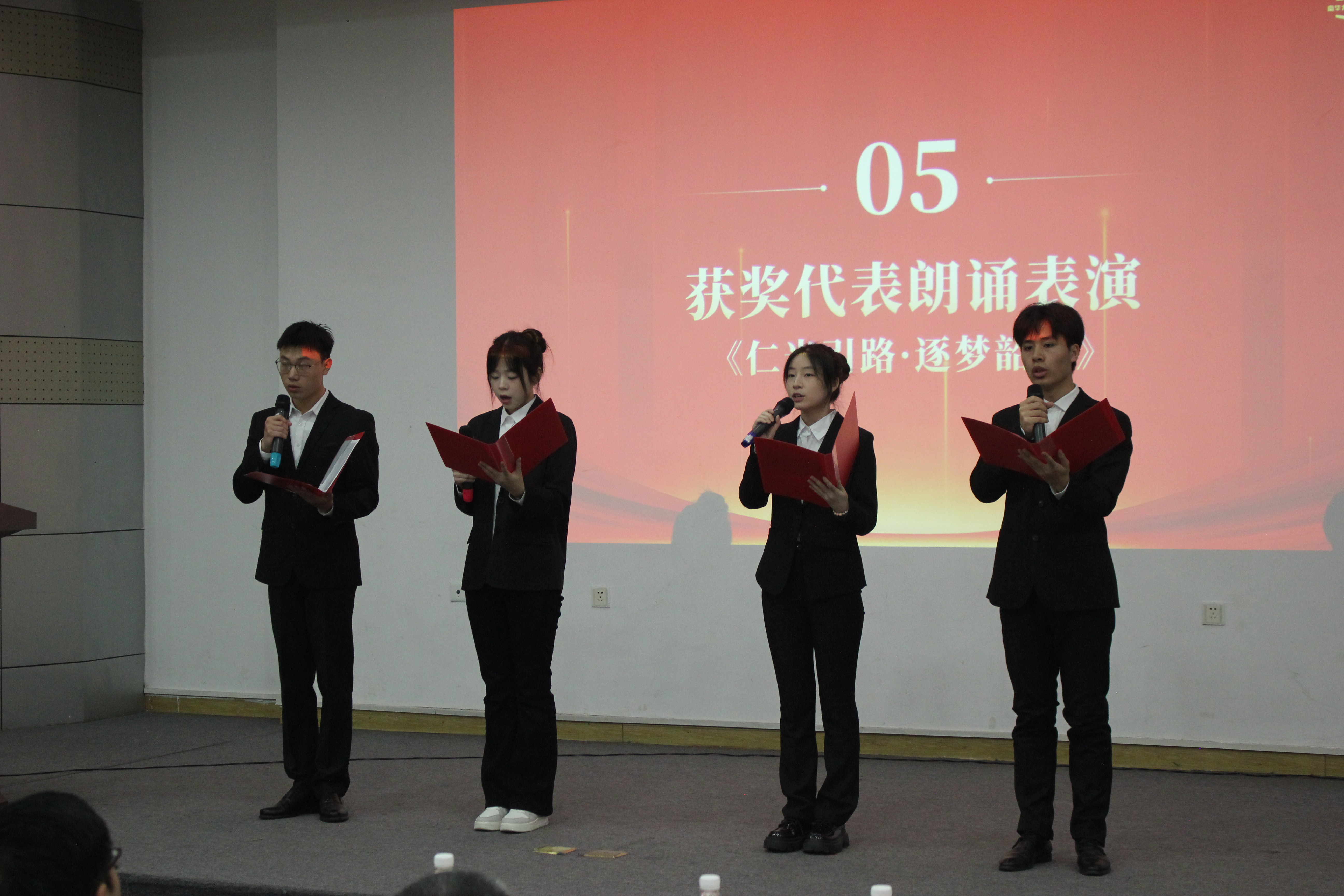 颁奖环节后,获奖学生代表献上诗朗诵《仁光引路・逐梦韶华》,以激昂的语调和真挚的情感,表达了对捐赠人的感恩、对母校的深情以及对未来的憧憬,展现了南华学子“明德、博学、求是、致远”的精神风貌。