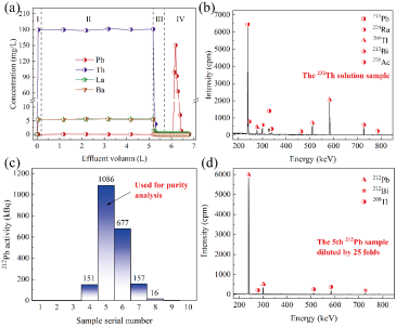 针对上述瓶颈,陈立丰等人立足我国232Th资源较为丰富的国情,首次提出了一种基于阴离子交换的212Pb制备新方法及原理。通过向多核素体系中引入卤素离子与Pb(II)配位,然后借助阴离子交换树脂SiPyR-N4(实验室自行研制)对体系中阴/阳离子种态的精准识别,可高效实现对232Th衰变链中212Pb的一步精准分离。以2公斤硝酸钍作为原料开展热态分离实验,最终获得了约2.07 MBq的212Pb样品,放射性核素纯度达到了99.9%,化学回收率达到了迄今最高的88.3%。与此同时,研究人员还基于先进光谱学手段和理论计算,成功阐明了SiPyR-N4树脂在上述体系中对212Pb的选择性分离机制。据悉,该工作现为国际上第一例基于阴离子交换从232Th衰变链中定量分离得到212Pb的案例,也是国际上第二例从232Th衰变链中直接分离得到MBq级212Pb的案例。该工作的完成,意味着从自然界中低成本提取稀缺核素212Pb成为了可能,并使得212Pb的制备可以从此不再受稀缺核素228Th的供应制约。