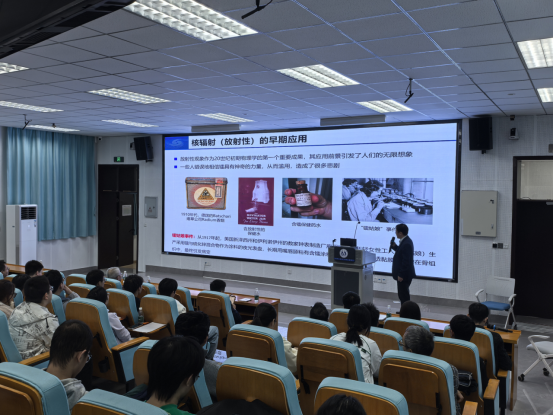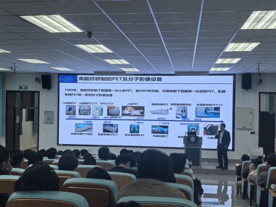 章志明从核成像探测技术的基本原理出发,系统梳理了国内外最新研究进展,重点介绍了团队在高端核探测装备自主研发、核心算法攻关及产业化应用等方面取得的一系列突破性成果。现场展示的国产新型PET探测器、SPECT小型化样机及同步辐射成像的应用案例,引发了在场师生的热烈讨论。