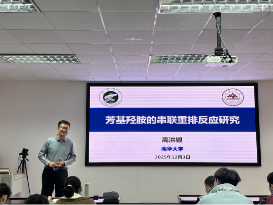 12月3日上午,山东大学/宁夏大学化学化工学院院长高洪银教授应邀来访,在化工楼学术报告厅作了题为“芳基羟胺的串联重排反应研究”的学术报告。报告会由我校化学化工学院院长林英武教授主持,部分教师、研究生参加交流。