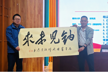 报告现场气氛热烈,同学们踊跃抢答。陈柒叁为每位同学赠送了他亲笔书写的毛泽东诗词,还特意为学院题写“铀见未来”四字,寄托对学院育人事业与学子成长成才的美好祝愿。