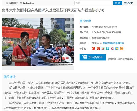 本报讯(通讯员李谌涵)2015年7月18日,南华大学2015年“三下乡”社会实践活动在衡山县白果镇涓水村顺利开展。美丽中国实践团围绕环境污染、水资源保护、垃圾处理、气候异常、资源开发、自然灾害预防等问题进行走访调查,并开展科普知识宣讲、建言献策等活动。