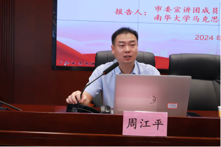 他更把思政教育延伸到课堂之外,用心搭建实践育人平台。2025年暑假,周江平带领团队在户外拍摄廉洁文化宣传视频,暑气渐浓,温度逼近40度,周江平的衬衫被汗水浸透,依然全程紧盯拍摄细节,一丝不苟、毫无懈怠。研三学生张淑清晰记得:“有一次,他在湘南学联纪念馆现场教学,谈及革命先辈的赤诚初心时,眼底泛起泪花,眼神坚定,深深打动了在场每一位学生。”