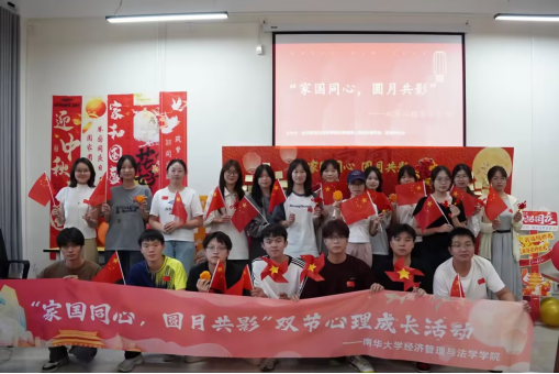 月满华夏,礼赞山河。正值国庆与中秋双节交汇之际,经济管理与法学学院于9月28日在崇义楼南楼201“在商言商”特色成长辅导室,温情开展“家国同心,圆月共影”双节心理成长活动。本次活动旨在超越传统的节日欢庆,通过系列沉浸式体验,将宏大的家国情怀转化为可感知、可参与的心理成长养分,引导学生在书写与手作间,完成一次情感的积极表达与内心的正向赋能,让家国情怀与团圆温情在校园绽放。