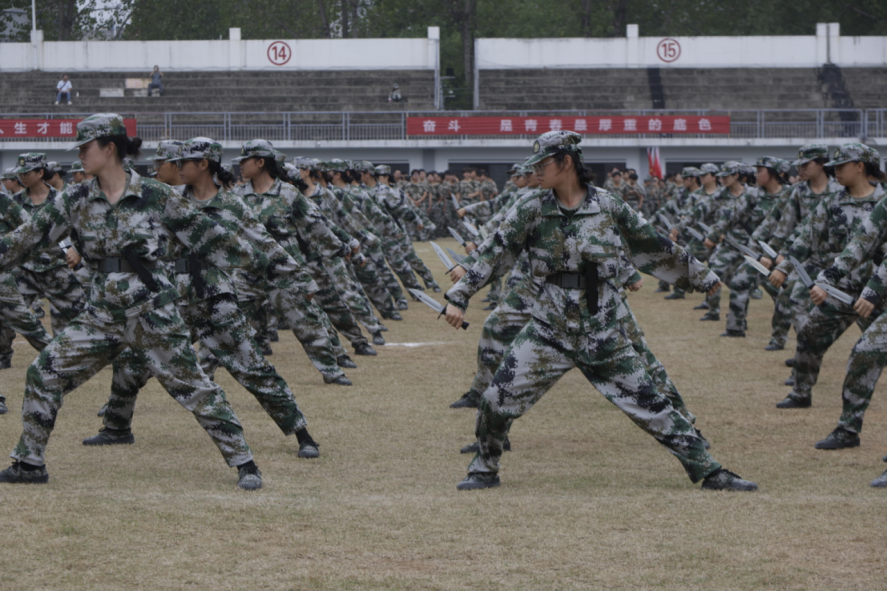 汇演中,语院240名女生组成的匕首操队伍吸引了大家的注意,一声声“杀”铿锵有力,她们化身“玫瑰利剑”,眼神坚毅如炬,动作凌厉果决,将柔美与力量完美融合,以飒爽英姿诠释新时代巾帼风采,成为汇演中最亮眼的青春符号。