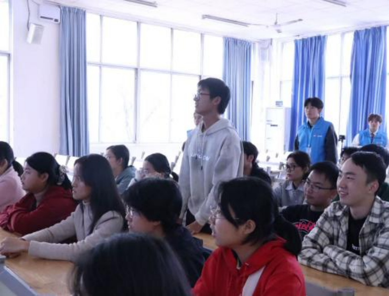 在互动交流环节,现场气氛热烈,学子们踊跃发言,积极回答主讲人就此次宣讲会内容给出的提问,有的同学结合南华大学和专业特色分享了自己对“强核报国”的理解。宣讲团成员耐心倾听回应,进一步激发了学子们的使命感与责任感。
