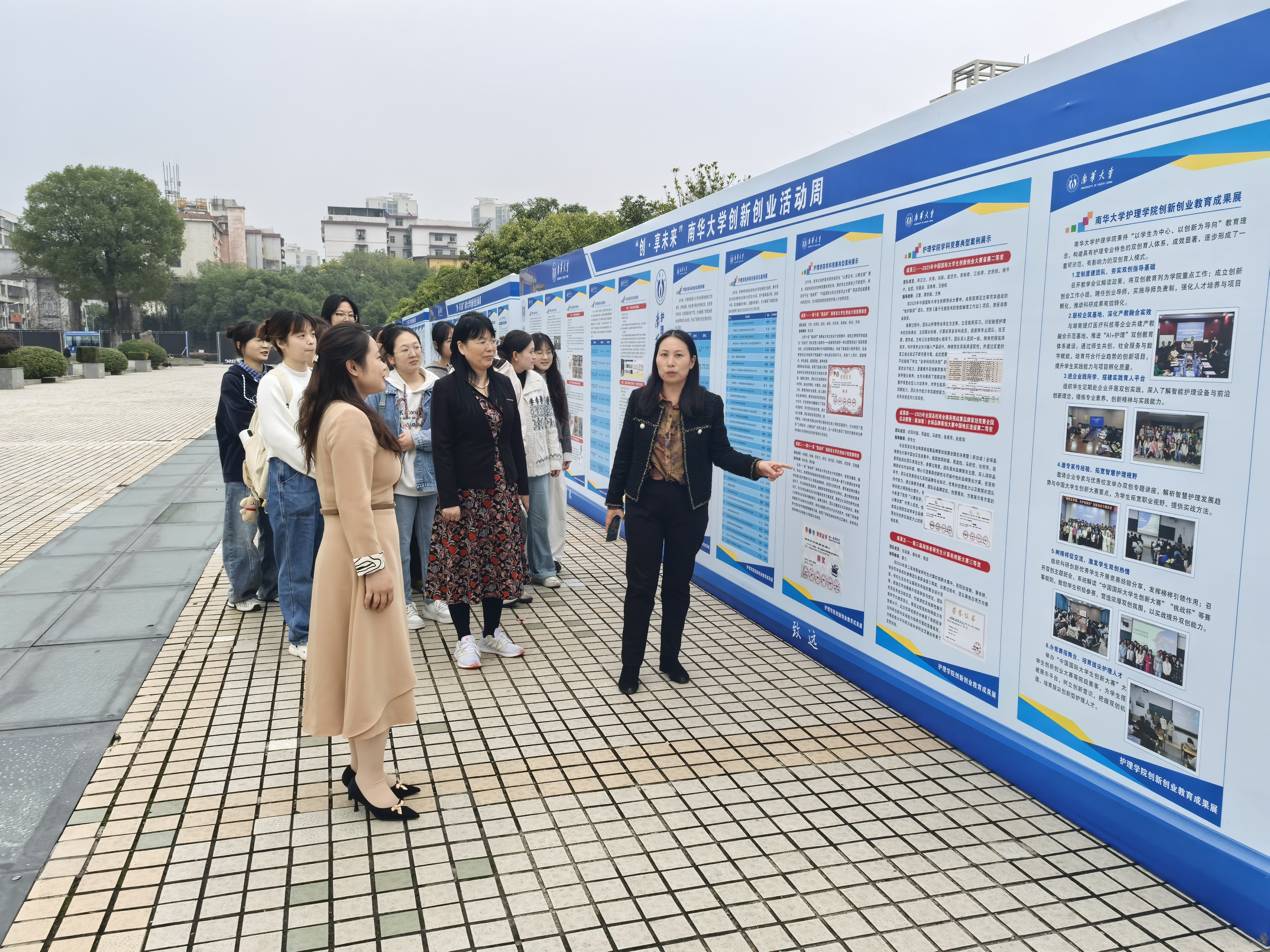 本次成果展以图文并茂的展板形式,系统呈现了护理学院近年来在科研创新、项目实践及学科竞赛等方面的典型案例与突出成果,充分彰显了学院在双创教育方面的特色与成效。