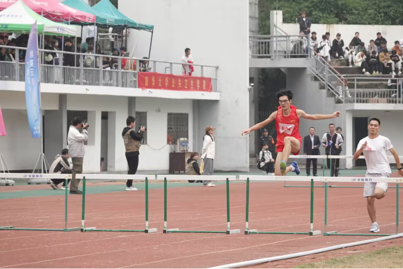 随着发令枪响,彭继开全力奔跑。比赛中,他不受其他选手节奏干扰,始终保持冷静,顺利完成比赛。跨越栏架时,他动作行云流水,体态轻盈灵动,毫无紊乱。最后的冲刺阶段,他全力冲刺,宛如猎豹般迅猛冲向终点。尽管未能站上最高领奖台,但他全程的精彩表现依旧赢得了全场观众的喝彩。