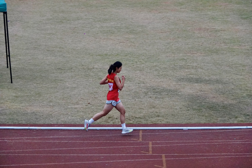 在漫长的赛道上,她与时间竞速;在体力的较量中,她与自我角逐。尽管她的面庞略显倦容,但她的眼中闪烁着从容与坚韧,这一幕深刻地震撼了每一位观众的心灵。在观众雷鸣般的喝彩声中,黄毓君同学一鼓作气,脱颖而出,跨越终点,摘取5000米长跑项目的桂冠。
