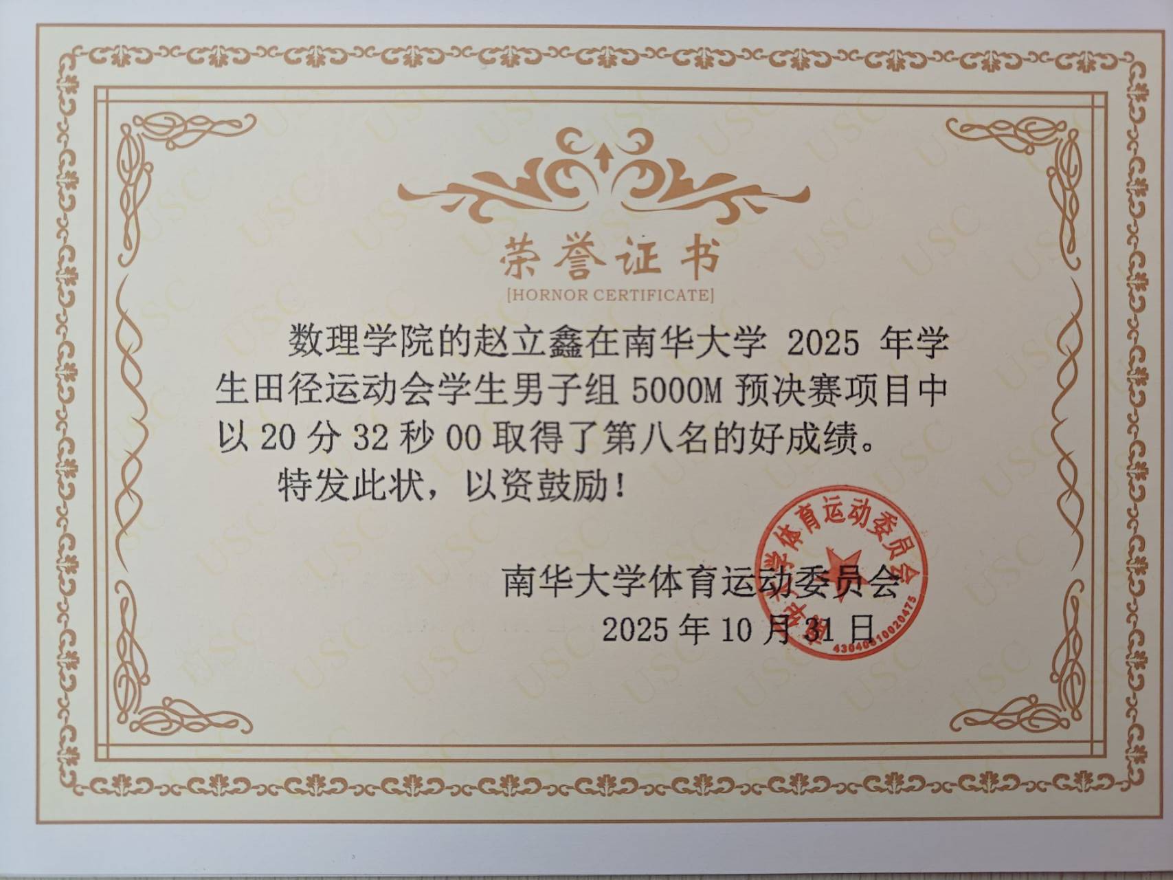 点赞坚持!赵立鑫同学在2025年校田径运动会男子5000米项目中斩获第八名!