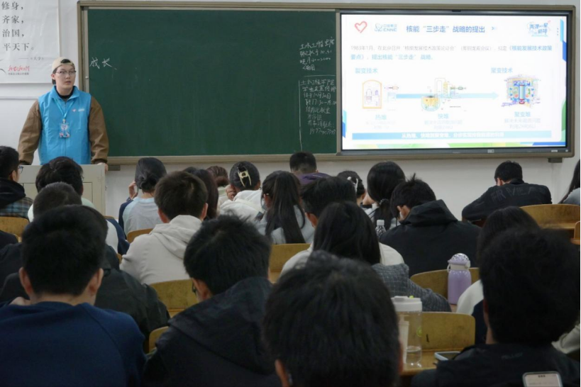 此次宣讲不仅是南华学子践行“强核有我”使命的生动实践,更是高校传承核工业精神、普及核能科学知识的重要载体。本次活动,以青年视角诠释“两弹一星”精神的时代价值,既展现了我国核能技术的硬核实力,又彰显了新时代青年传承科技报国使命的坚定信念。在核能技术迭代与国际合作深化的大潮中,我国正以“三步走”战略为蓝图,向清洁能源和实现碳中和目标稳步迈进。
