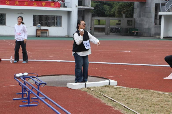 上午8时30分,女子铅球正式开赛!我院25卫检02班何晴珏与25预防04班曹书琪同学凝神蓄力,在投掷区绽放力量光芒。她们握球稳准、掷出果敢,铅球划破长空的弧线,尽显公卫学子的硬核实力与昂扬气魄!