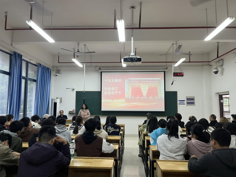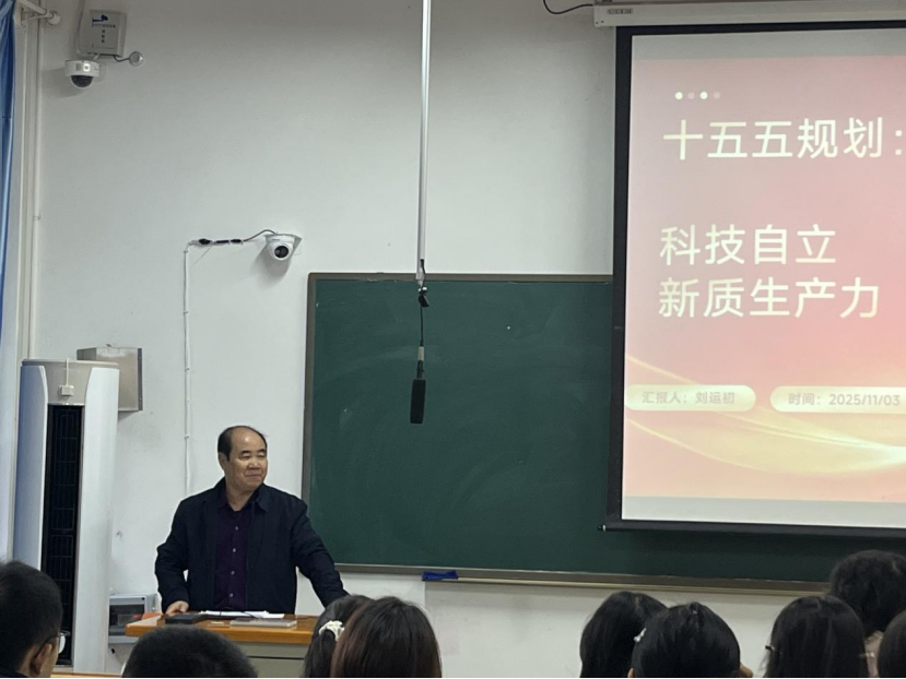 随后,师生们齐聚雨母楼121教室,聆听了一场由支部书记刘运初主讲的主题党课。刘运初围绕“国家‘十五五’规划、科技自立自强与新质生产力”等前沿议题进行了深刻阐述,并结合医学领域的创新发展,激励同学们勇担时代重任。23级的预备党员朱睿智表示,“这一堂党课让我深刻认识到,医学生不仅要精进医术,更要与国家科技自立的宏图紧密相连。我们要努力成为能用科技创新攻克医学难题的‘新质医生’。” 在场的老教师与青年学子共同学习,交流思想,展现了南华人终身学习、与时俱进的精神风貌。