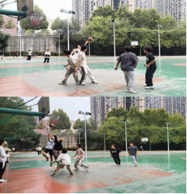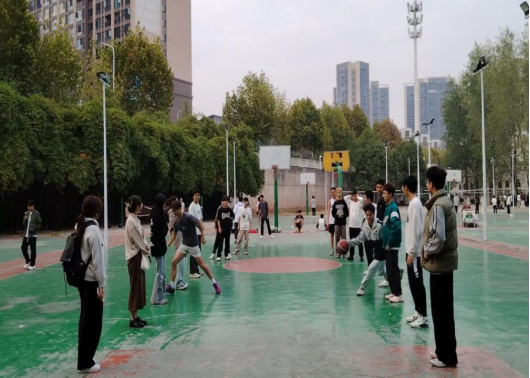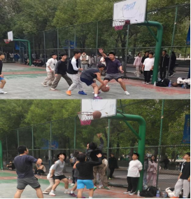 激烈的角逐结束后,现场迎来了轻松有趣的“绕桩-运球-投篮-接力”互动环节。更多场外同学参与其中,进一步拉近了同学们之间的距离。