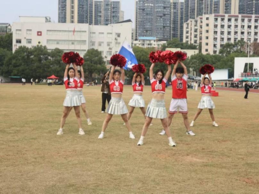 比赛时,学院啦啦操队为全校同学多次表演精彩舞姿,同学观众积极加油鼓劲、高声助威,工作人员敬业奉献,大家共同努力,为学院在大运会上创佳绩奠定了基础,也充分展现我院团结一致、积极进取的精神。