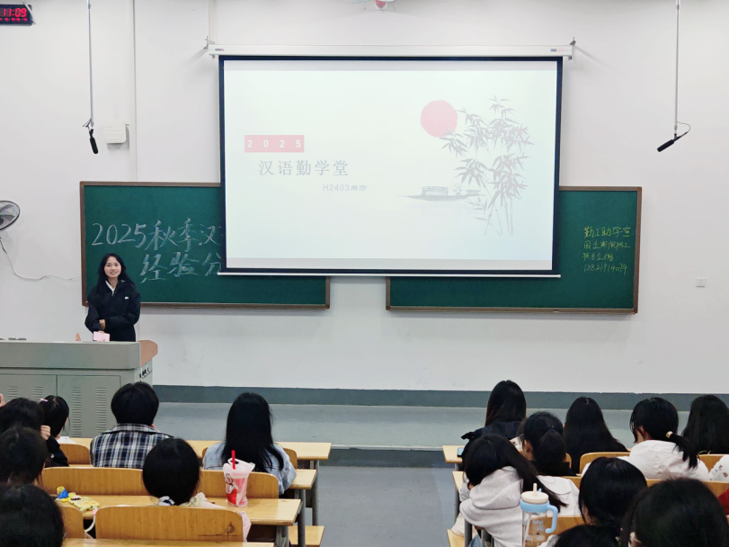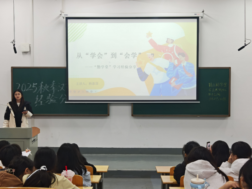 为了传递实用经验,助力新生明确方向,11月5日,语言文学学院于雨母楼308开展了2025秋季汉语勤学堂经验分享会。会议邀请汉语2305班的杨惠羽、汉语2403班的周莎2位同学担任主讲人,为25级新生分享经验。