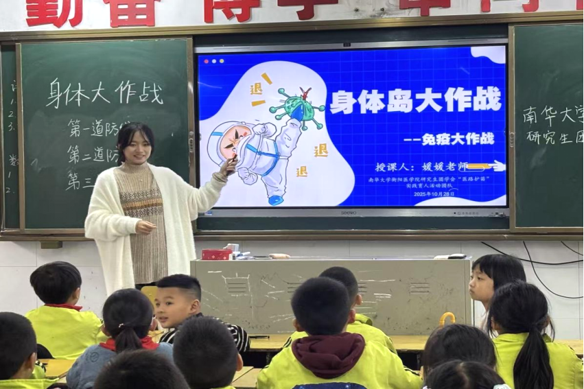 诺贝尔生理学或医学奖花落免疫学领域,再度将全世界的目光聚焦于人体免疫系统的精密与神奇。11月3日下午,衡阳医学院“青春向党 医路阳光”健康科普社会实践团队走进蒸湘区实验小学三年级4班,将这份前沿科学的回响,化作一堂名为“身体岛大作战”的身体免疫启蒙课。