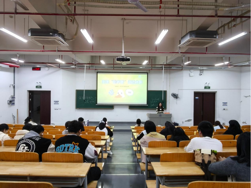 11月11日晚,语言文学学院于雨母楼215开展了日语勤学堂经验分享活动。活动特邀日语2202班段馨颖和日语2201班刘心语两位同学作为主讲嘉宾,为同学们提供学习指导。