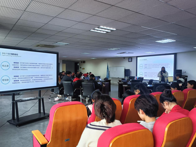 11月12日中午,语言文学学院于崇礼楼北406开展“菁蓝工程”第四期学生骨干培训,本次培训以“活动策划能力提升与新媒体运营实务”为主题,第九届全体团干、25级班长、副班长及团支书参加,学院团委书记肖玲慧主讲。