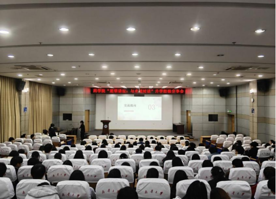 分享环节中,三位学长学姐结合自身经历,围绕学业规划、科研实践、院校投递及面试技巧等维度展开分享,系统梳理备考路径。赵泽艳以“三阶学习法”为核心,提出课前梳理框架、课中聚焦要点;唐颖芬强调英语六级成绩的关键作用,鼓励参与科研竞赛提升竞争力,建议面试时广泛投递、稳妥保底;危佳豪通过线上连线分享,提出科研中应主动请教、深度参与,面试时需对实验内容了然于胸、如实应答。此外,三位嘉宾还结合大学生活感悟,提醒学弟学妹平衡学业与身心健康,以积极心态探索成长路径。