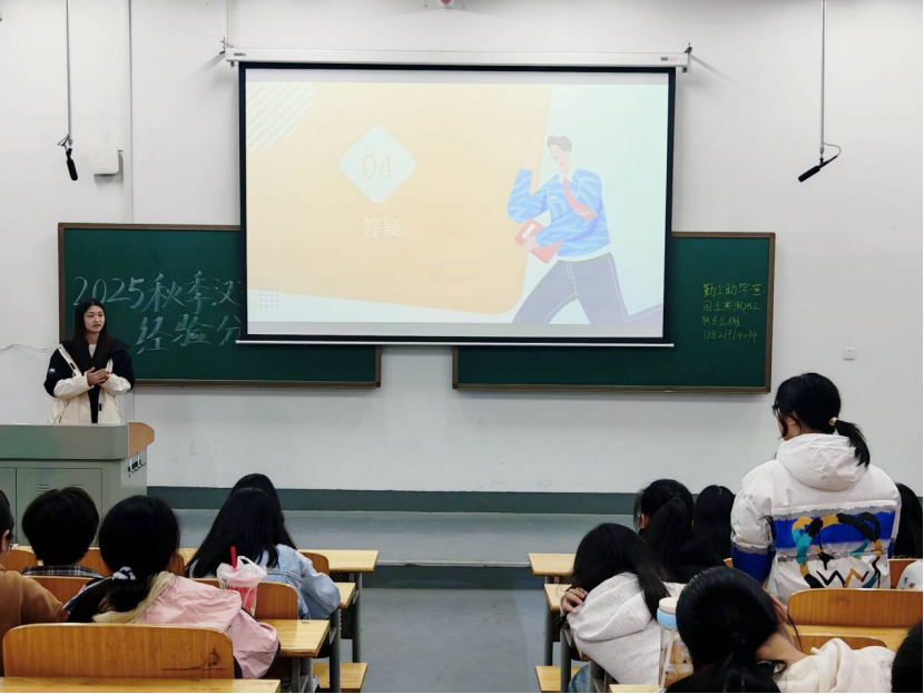 活动体系清晰,有序推进。前期聚焦于英语、汉语、日语三大专业的核心知识与学习方法,举办了高质量的主题讲座;后期则创新性地设置了两期“一对一帮扶”专场,将帮扶重心从普适性的经验分享转向个性化的难题破解。活动目标明确,直指学生在专业学习与考前复习中的实际痛点。荣获国家奖学金、国家励志奖学金的优秀学子们充分发挥了榜样示范作用。在专题讲座中,他们不仅是知识的传授者,更是学习路径的规划师,围绕课程重难点、复习策略与应试技巧进行了深度剖析与倾情分享。现场互动踊跃,思维碰撞频繁,激发了与会同学的求知热情与进取心。