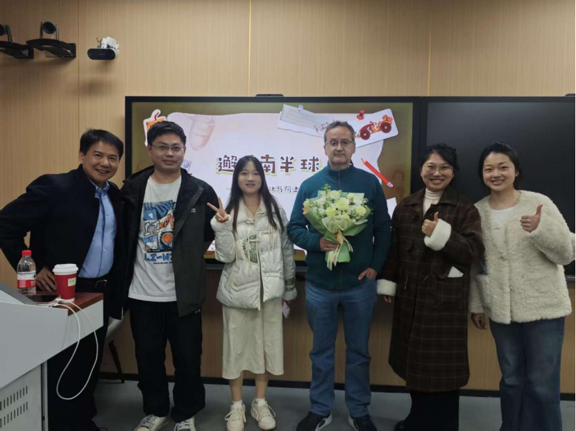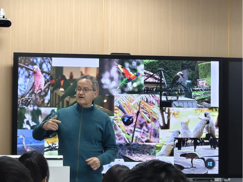 活动特邀数理学院Canning教授主讲。他以亲身经历为线索,将澳洲的日常与风情娓娓道来。屏幕上,悉尼歌剧院的轮廓与蓝山晨雾交相辉映,粉红凤头鹦鹉的羽色点缀着城市公园的景致,海港大桥的落日余晖温柔铺洒。从大学课堂的自由松弛,到周末市集的咖啡醇香,从鹦鹉偷喝咖啡的趣闻,到街头巷尾的生活暖意,Canning教授用鲜活的细节,打破了地理的隔阂,让南半球的晨昏暮晓,成为师生触手可及的体验。