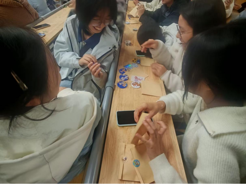 活动第一阶段在南华楼开展。25级团学会心理部部长周慧云播放趣味小视频,以轻松内容快速点燃现场氛围,打破初次见面的拘谨。“治愈故事”环节中,同学们踊跃分享互帮互助的暖心经历,如考试失利后的安慰、难过时递出的纸巾等;“情绪盲盒”环节里,大家围绕抽中情绪交流真实瞬间,在倾听与倾诉中实现情感共鸣,建立情感联结。