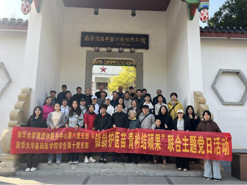 为加强党性教育、激扬青春斗志,11月28日,基础医学院学生第十党支部、学生第十一党支部与离退休第八党支部联合开展党日主题活动。支部书记刘运初、离退休党员代表、学生党员以及部分25级新生共同参观南岳游击干部训练班陈列馆,在实践中追寻抗日印迹,传承爱国精神。