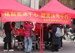 12月4日国家宪法日,南华大学法智同行工作室联合公共卫生学院、药学院、松霖建筑与艺术设计学院,于红湘校区求是园食堂门口、雨母校区笃行园食堂门口开展以“弘扬宪法精神,建设法治校园”为主题的宪法科普宣传活动,吸引了全校师生广泛参与。