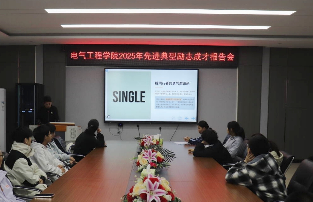 12月3日,电气工程学院在崇业楼会议室举办先进典型励志成才报告会。本次报告会主题为“创新领航,竞赛赋能”,聚焦创新创业和科研竞赛,特邀励志学生代表郭鑫、李慧捷、李子梦三位同学作专题分享,内容翔实,实用性强,吸引了百余名同学参与。现场交流活跃,学习氛围浓厚。