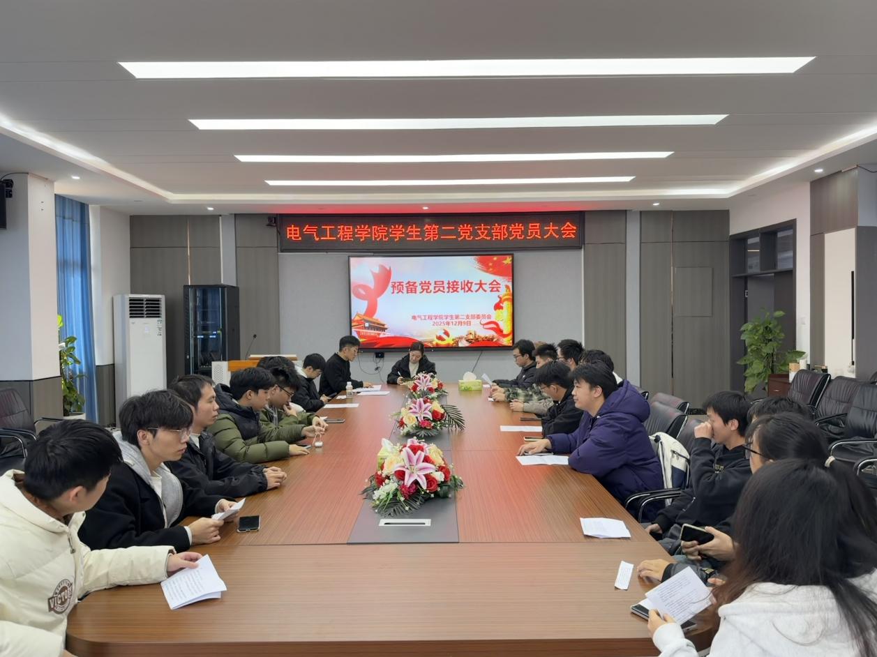 12月9日,电气工程学院学生第二党支部于电气楼B301会议室召开预备党员接收大会。本次大会以“严把党员入口关、吸纳优秀青年力量” 为核心,专题讨论接收向宇轩等五位同志为中共预备党员事宜。支部书记周珍珍及全体学生党员参会,会议由支部副书记王朝阳主持。
