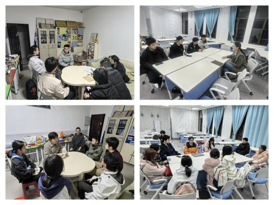 活动中,学长学姐直击痛点,将晦涩的成长路径转化为可复制的“实战攻略”;保研代表分享了“课程-科研-竞赛”三位一体模式,传授“思维导图”与“错题动态更新法”等方法,破解核专业课业重、难度高的难题;就业典型则对标企业用人标准,从简历细节打磨到做好面试准备,强调“专业技能与综合素质并重”才是核心竞争力。活动现场气氛热烈,充满温情。围桌而坐,分享者倾囊相授;专注聆听,学弟学妹提问踊跃。