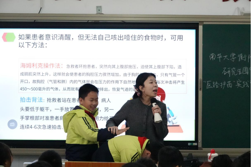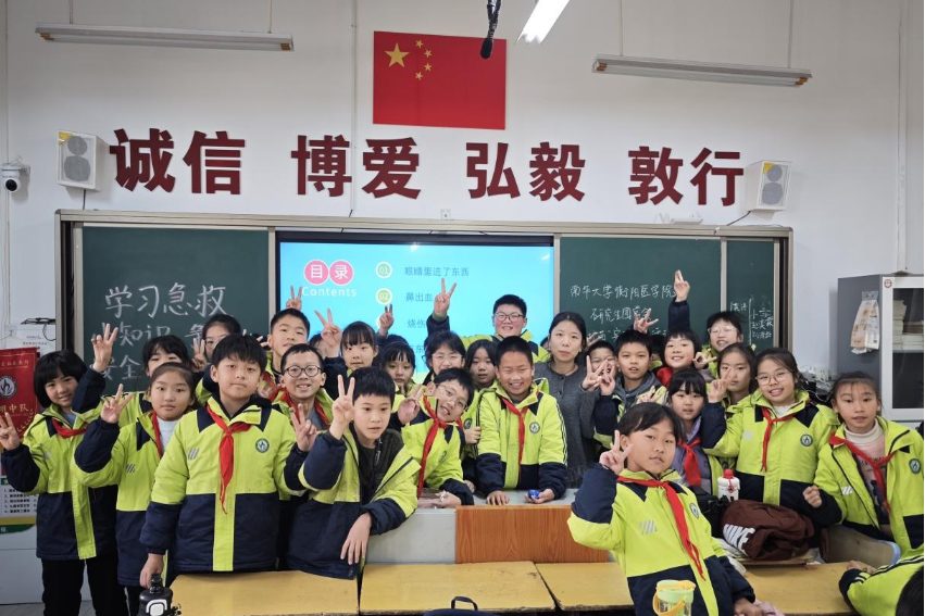 12月30日上午,衡阳医学院“医路护苗”实践育人活动团队走进蒸湘区实验小学,为五年级8班的同学们带来了一场生动实用的急救安全小课堂。通过情景模拟、互动演示等活动形式,帮助孩子们掌握在突发情况中保护自己与他人的正确方法。