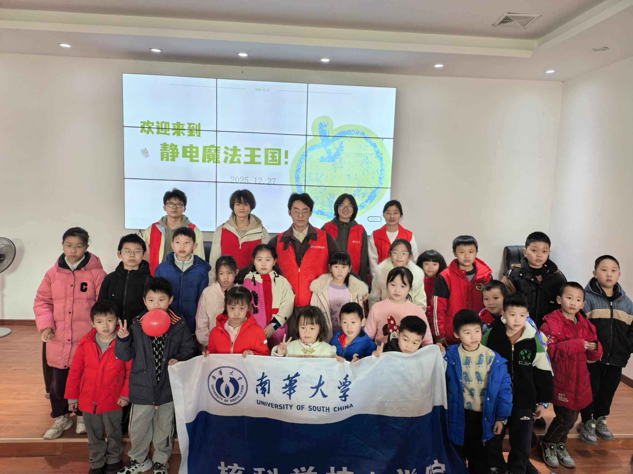 为积极响应国家科普教育号召,激发儿童科学兴趣,助力青少年科学素养提升,近期,核科学技术学院“核”你一起棒棒团志愿服务团队走进衡阳市儿童图书馆,为小朋友们带来了一场别开生面的静电科普课堂——“静电魔法王国”。本次活动以趣味互动和实验体验为主线,带领孩子们化身“静电小巫师”,在魔法般的实验中探索静电的奥秘。