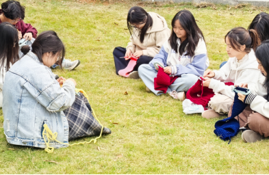 活动现场氛围温馨热烈,同学们齐聚一堂。因为不少人是首次接触编织,学院贴心提供了“织围巾神器”等工具。大家在互动交流中学习编织技巧,从生疏到熟练,一根根柔软的毛线在指尖逐渐成型。这不仅是一次技能学习,更是一场专注力与耐心的深度锤炼。活动结束后,同学们表示,不仅锻炼了动手能力,更在交流中增进了彼此情谊,深刻体验到手工劳动特有的治愈感与价值感。