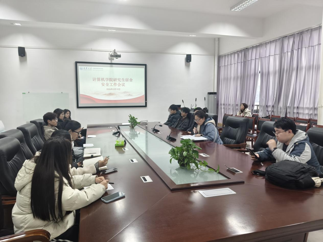 3月19日下午,计算机学院召开研究生宿舍安全工作会议暨研究生安全提升行动部署会。计算机学院学工室主任单云丽、研究生会主要成员及各班级骨干参加会议。