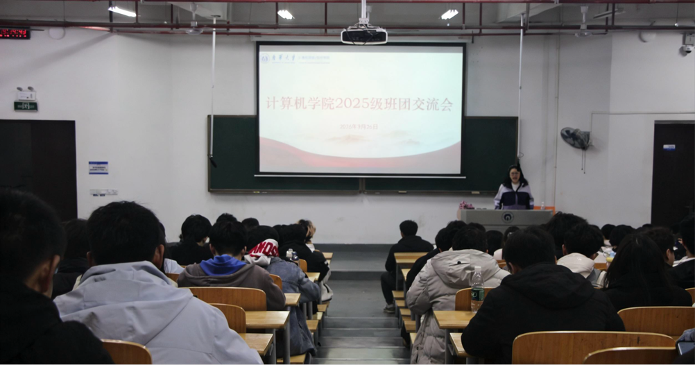 3月26日晚,计算机学院在雨母楼召开2025级班团工作交流会。分团委书记赵汕珊、院团学部门负责人及2025级各班班委参加会议。
