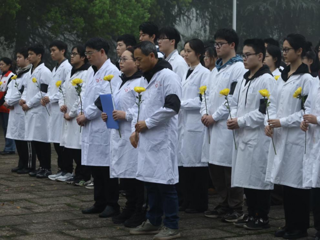 为深切缅怀医学教育事业无私奉献的“大体老师”,提升医学生职业素养,4月1日清晨,基础医学院在放飞广场举行清明默哀仪式。衡阳市红十字志愿服务中心志愿者和百余名学生齐聚现场,以庄重之举寄托哀思,以赤诚之心致敬生命。