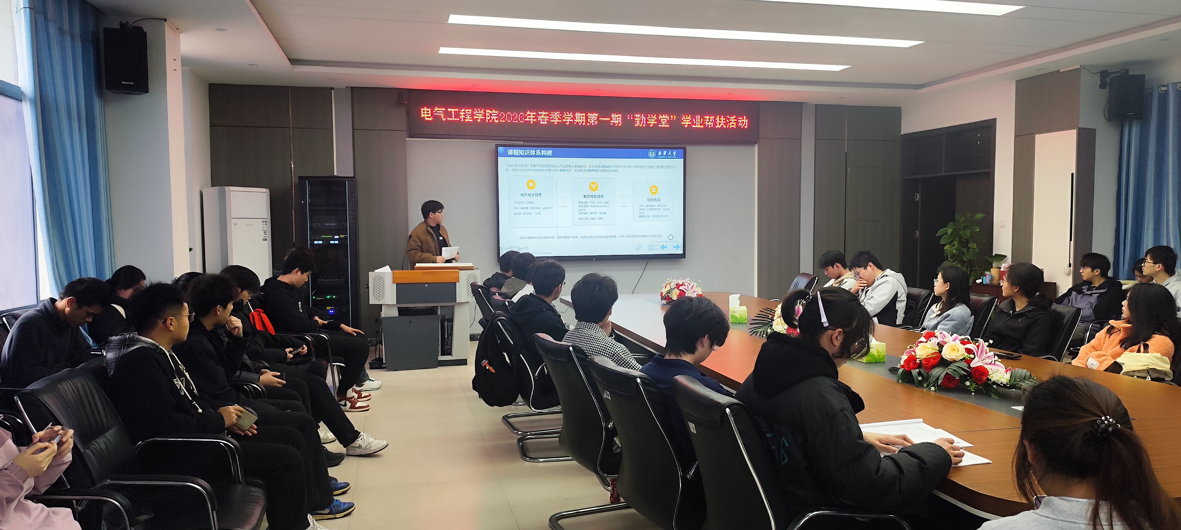 4月2日,电气工程学院在崇业楼会议室举办2026年春季学期第一期“勤学堂”学业帮扶活动。此次活动聚焦“电力电子技术”课程,由国家励志奖学金获得者詹家诚同学担任主讲,吸引了百余名同学参与,现场学习氛围浓厚,大家认真聆听、专注记录。