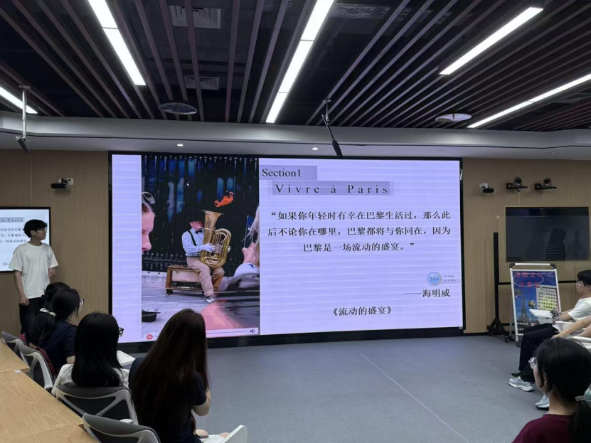 4月9日晚,由慧眼看世界文化育人工作室主办的法国文化分享会在图书馆901开展。主讲学生邵泽楚结合自身旅居经历,从“生活在巴黎”“学在巴黎”两大维度,带领同学们沉浸式感受真实的法国文化,解锁多元法式风情。