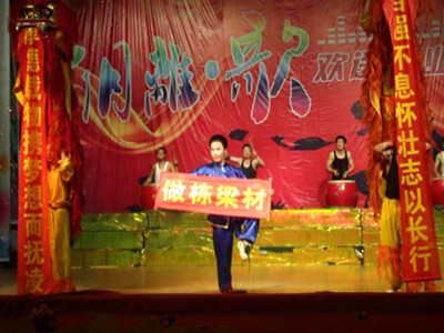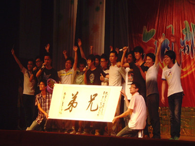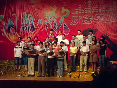 这是一场以毕业生为表演主体、以告别为主题的千人KTV音乐盛会。伴随帷幕的拉开,一首《克罗地亚狂想曲》以明快的节奏预热了现场气氛,由赵院长领衔的学院教师合唱团更是以一首《年轻的朋友来相会》让台下一片沸腾。节目进行的过程中,新浪微博上的呼声也逐渐热烈起来,有老师们的临别祝福,有校友的殷切寄语,有兄弟学院发来的贺词,更有同学间的依依惜别和表白之类的真情流露。主持人报幕与幻灯片简介协同串接着一个个火热的节目。合唱《我的好兄弟》诠释了真挚的兄弟情,国防生送别老兵的音乐剧《再见了老兵》挥泪舞台,院十佳歌手冠军李昌应一首《我相信》震惊全场,院团委书记禹敏老师与乐队协同演出的《飞得更高》更是将现场气氛带到最高峰,最后,改写历史的电气篮球队以一曲《相信自己》激起一阵阵“电气,威武”的高昂呐喊。在《狮舞青春》的对联祝福后,历时三个小时的毕业生晚会完美落下帷幕。